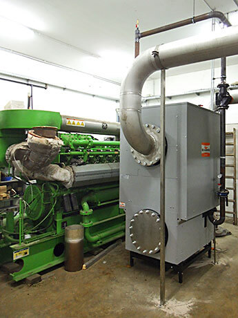 Viele konventionelle BHKWs haben einen thermischen Wirkungsgrad von ca. 50%. Der Brennwert-Abgaswärmetauscher nutzt die im Abgas steckende Kondensations-Wärme als zusätzlichen Wärmegewinn. Durch die eingesetzte Brennwerttechnik lässt sich der thermische Wirkungsgrad um bis zu 10% steigern. Dadurch schonen Sie auch die Umwelt: Denn durch den Kamin gelangen deutlich weniger Schadstoffe in die Luft.