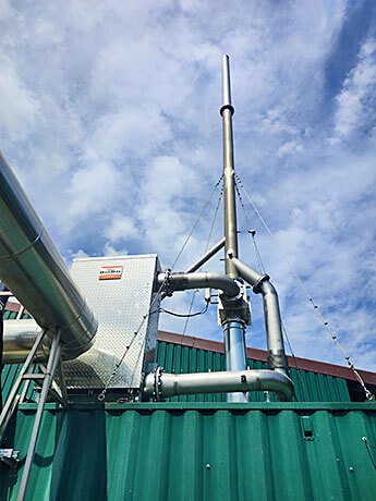 Der Keramik-Wärmetauscher wird einfach zwischen die Abgasleitung des BHKW eingebaut. Die damit gewonnene Wärme wird in das vorhandene Heizungssystem eingespeist oder als Prozesswärme verwendet.